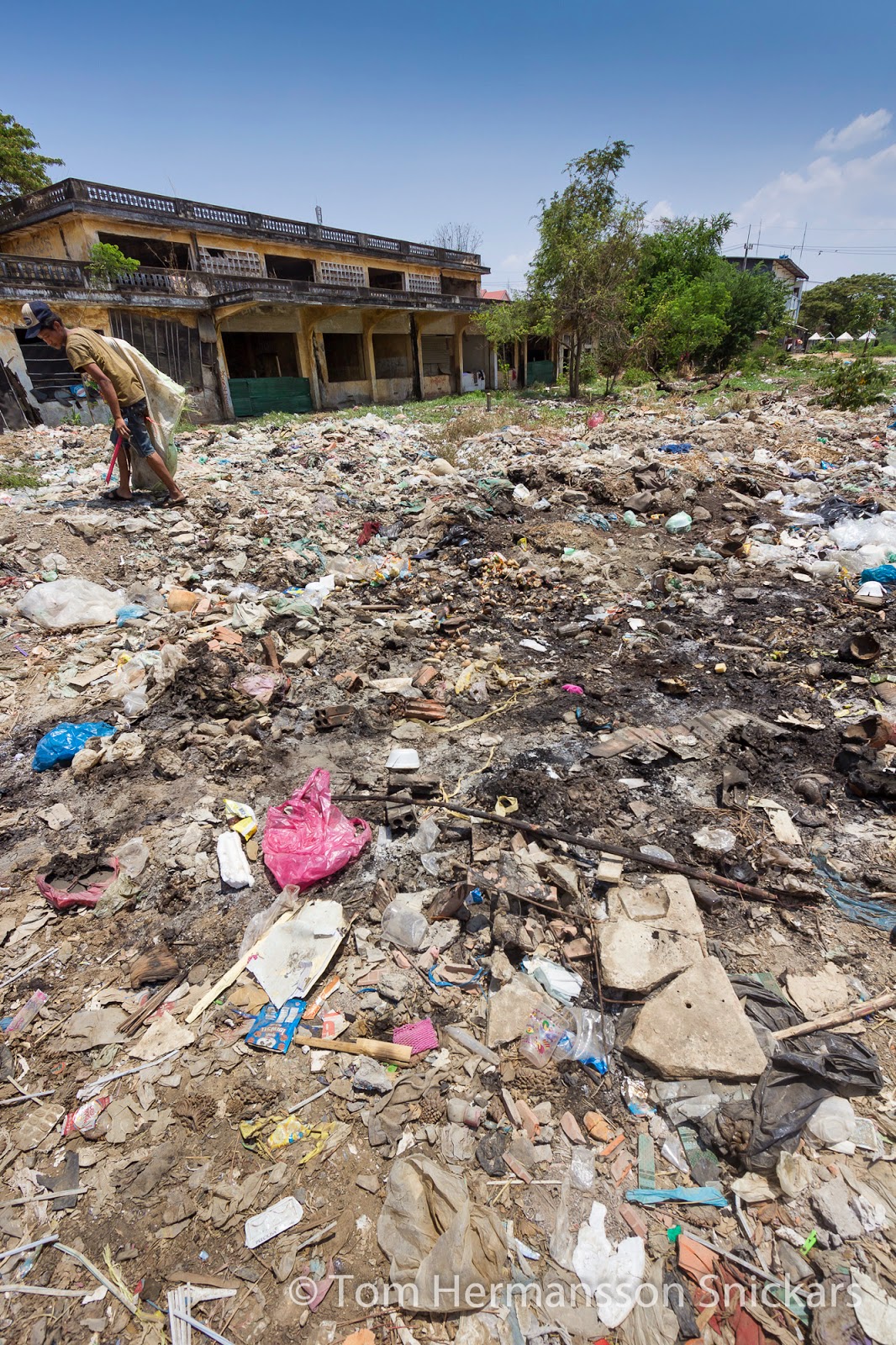 ด้านหน้าอาคารที่เคยเป็นย่านสถานีปอยเปต เป็นที่ทิ้งขยะ