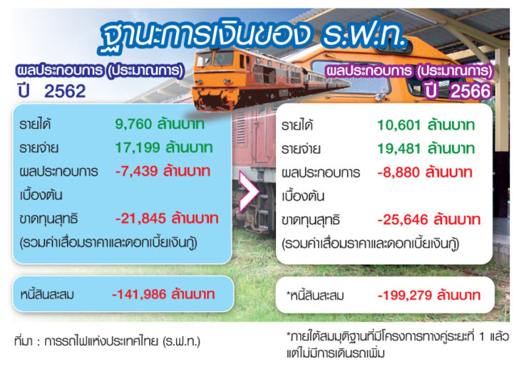 การที่ บอร์ด เร่งฟื้นฟูรถไฟให้เป็นไปตามแผน เพราะถ้าไม่เริ่มต้นในวันนี้ จะทำให้หนี้ที่ปัจจุบันมียอดสะสมกว่า 1.4 แสนล้านบาท พุ่งทะยานไปถึง 1.9 แสนล้านบาท ถ้าหากยังบริหารสไตล์เดิม ไม่ลุกขึ้นมา เปิด-ปรับ-เปลี่ยน ปฏิวัติภาพลักษณ์องค์กรโอกาสที่รถไฟไทยจะเป็นผู้ให้บริการระบบรางของรัฐที่ดีที่สุดในอาเซียน ในปี 2570 คงเป็นได้แค่ฝัน