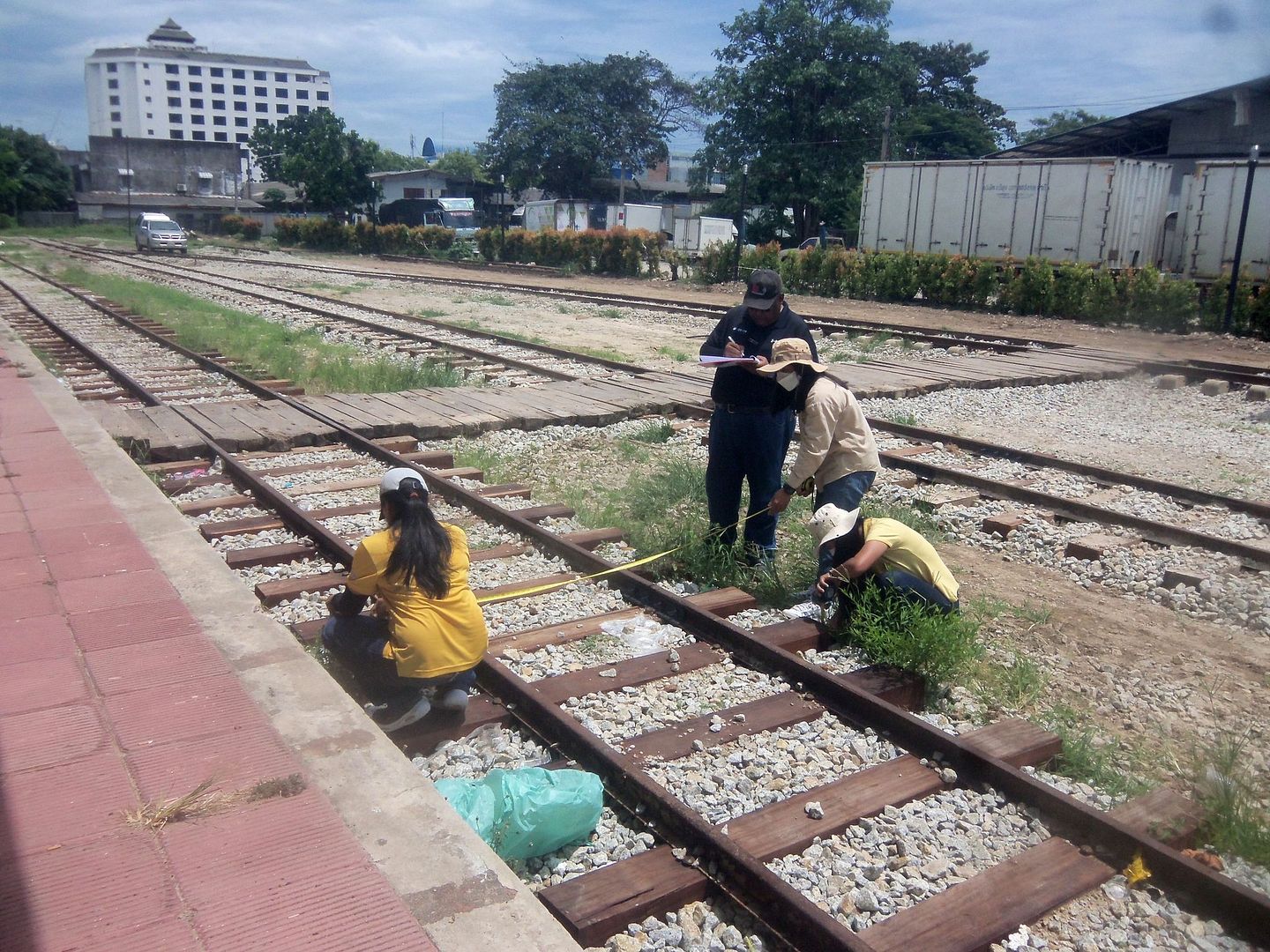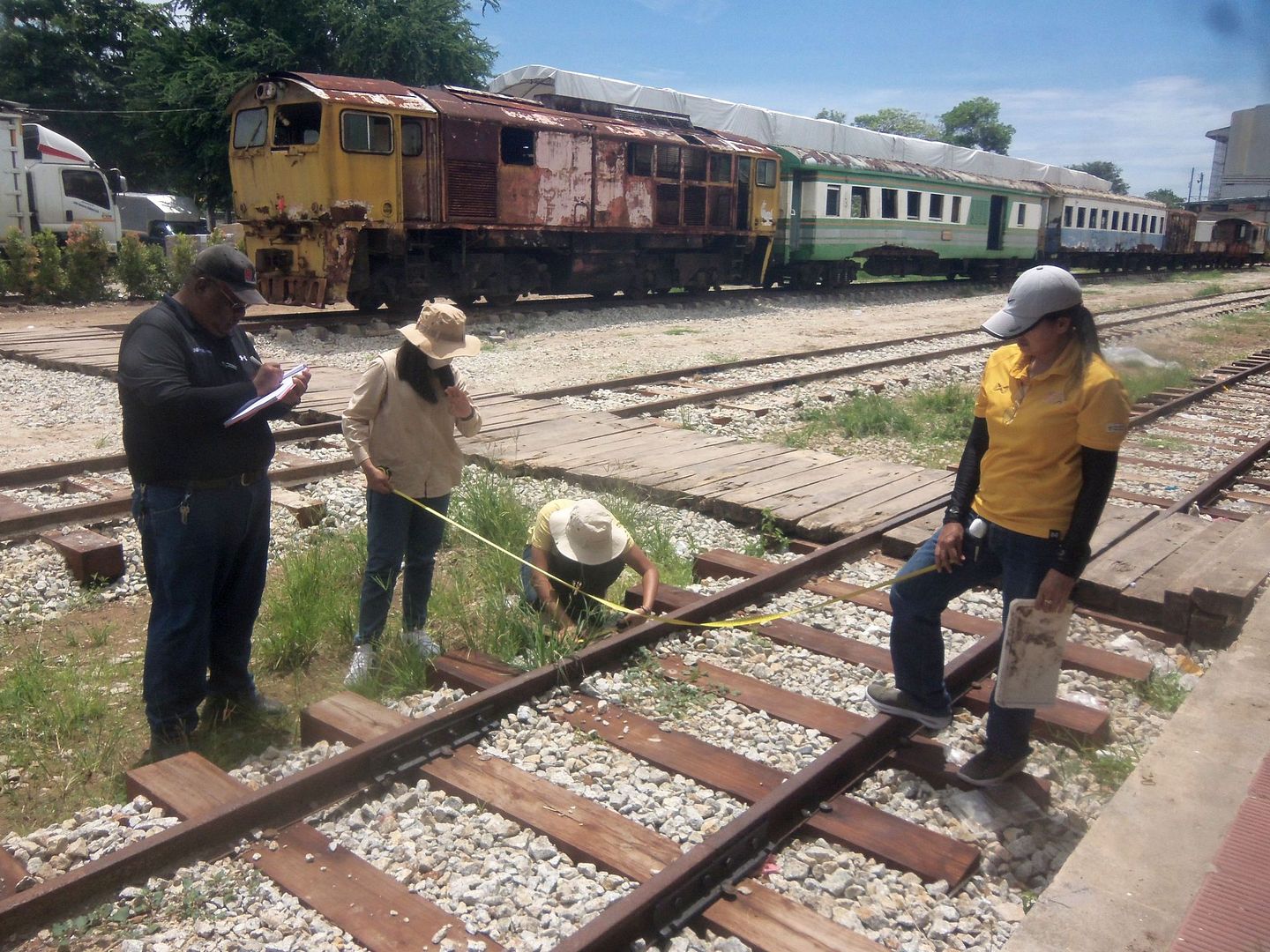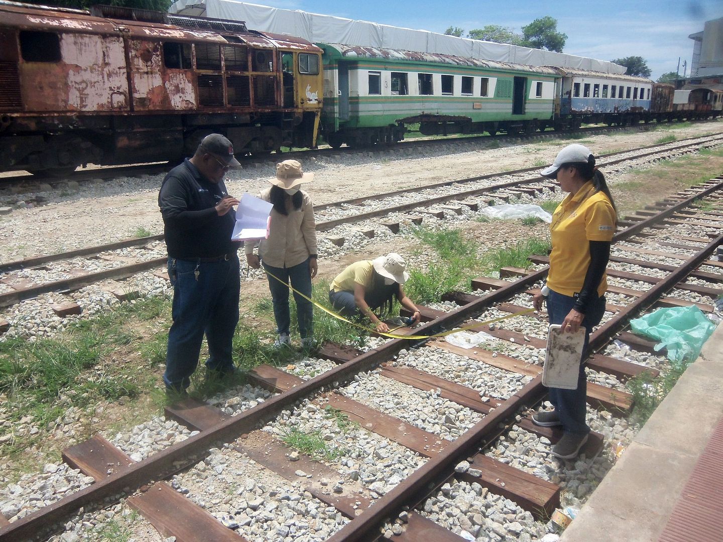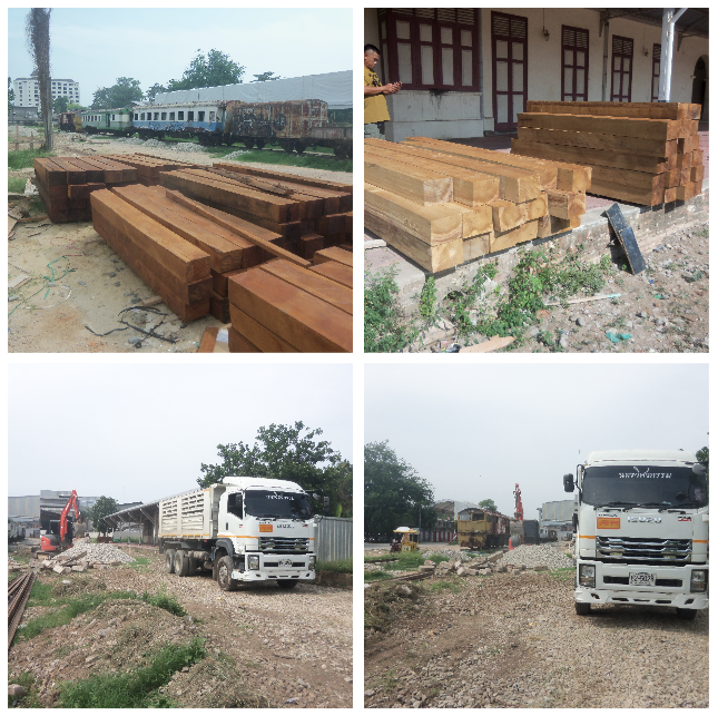On September 23, 2024, Mr. Panasan Khontharak, the head supervisor, along with officials from the Engineering Office of Songkhla City Municipality, meticulously inspected and counted the number and dimensions of every piece of railroad wood sleeper for the railway restoration project under the scorching sun.